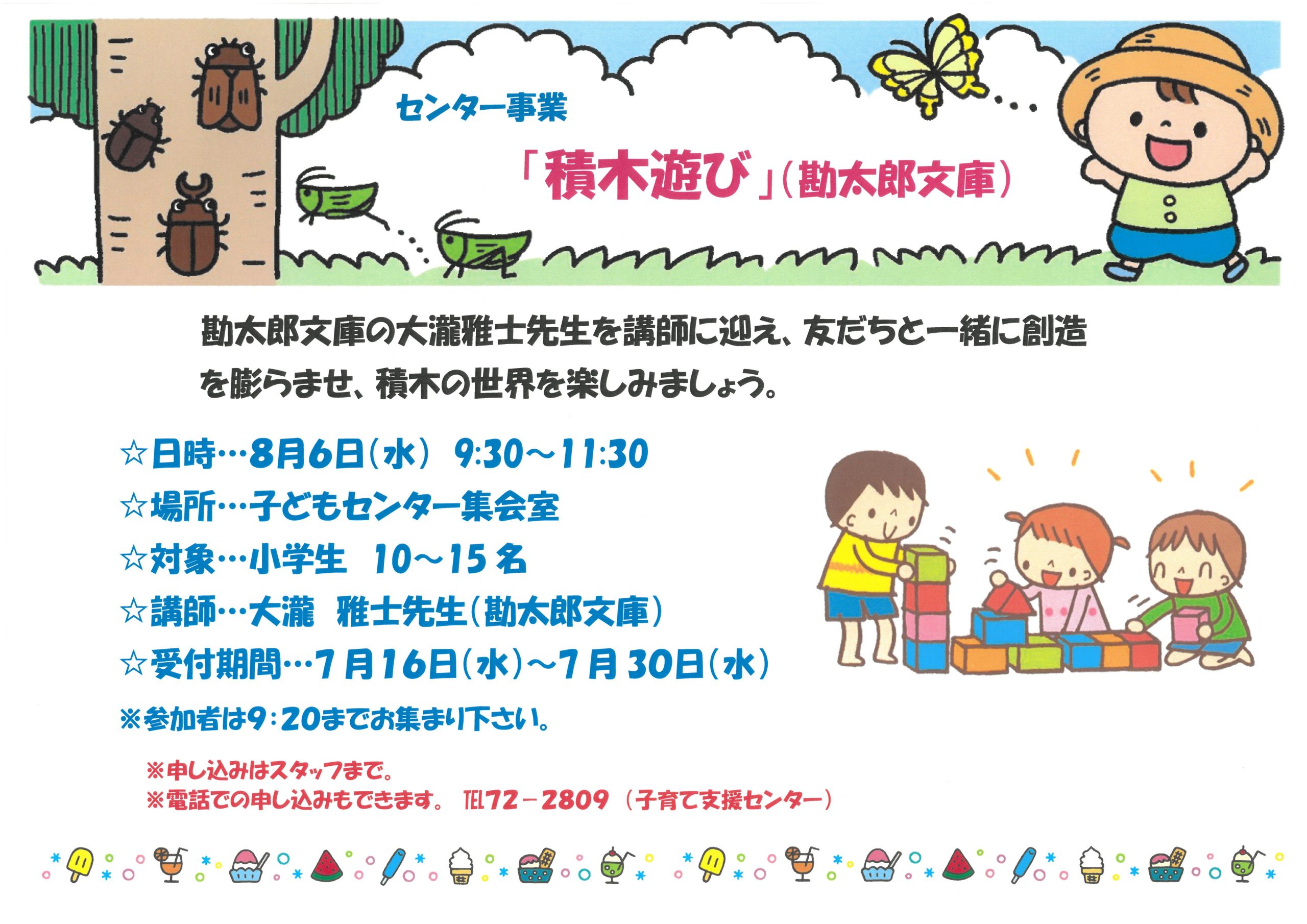 センター事業「小学生対象の積木遊び」(勘太郎文庫)